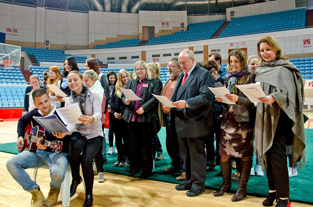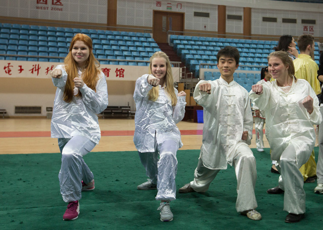 当天下午,中德学生进行了互动交流,德国欧洲联合大学的留学生们表演了具有巴伐利亚风格的大合唱和热情洋溢的“团队快闪”。我校大学生艺术团民乐队演奏了中国民乐名曲,武术队队员表演了中华武术,中德学生交流活跃。(国际交流合作处/文 宋建跃、焦点摄影/摄)