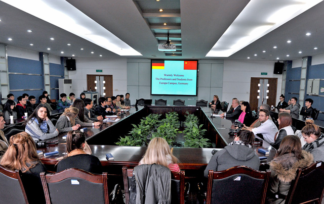 3月19日,由德国欧洲联合大学媒体艺术、新闻传播等专业28名留学生和5名教授组成的中国文化参访与学习代表团抵达我校,开始在我校的2015年春季访学、在中国的德国企业采访、上海-德国创新中心实训学习和节目制作。