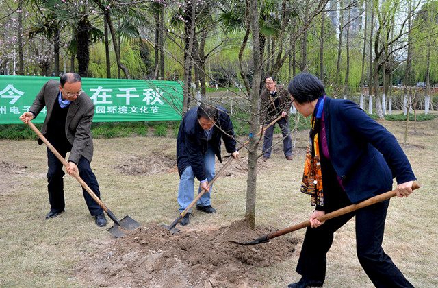 开幕式后,校领导和相关部门负责人、师生代表在月雅湖草坪、活动中心南草坪、问鼎北路等处,种下金钱松、银杏等各种乔木50余株,为美丽的杭电校园再添绿色。