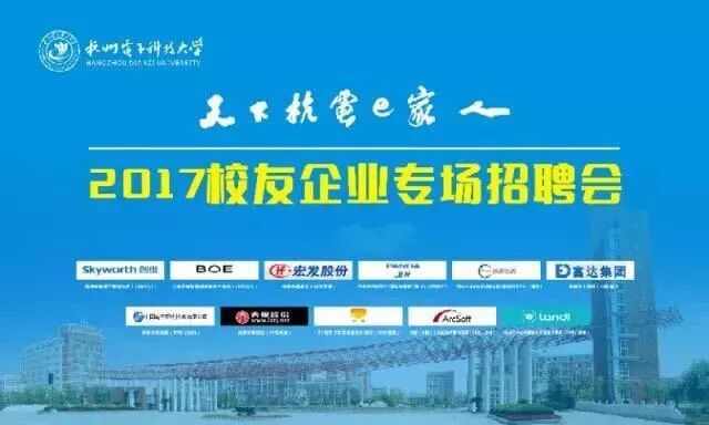 您好!为进一步加强校友企业与学校的交流合作,助力学生更好成长,服务校友企业更好发展,为企业招聘优秀人才搭建良好平台,由校友总会、招生就业处、合作发展处联合主办的杭州电子科技大学2018年度校友企业专场招聘会将于2018年10月19日(周五)举行。欢迎各界校友企业报名参加,招才纳贤。