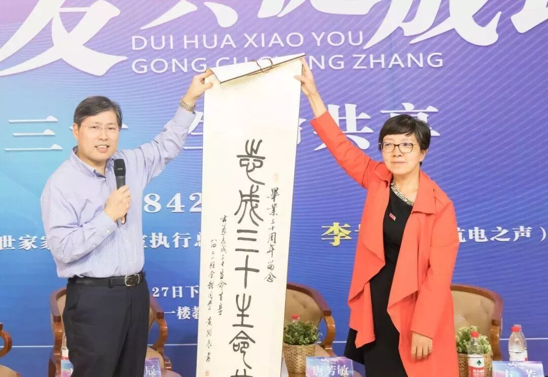 会上,校友黄弼辰代表8421班全体同学向学院赠送了写有“志成三十,生命共享”的书法作品,以表达全班同学对母校和学院的感恩之情。