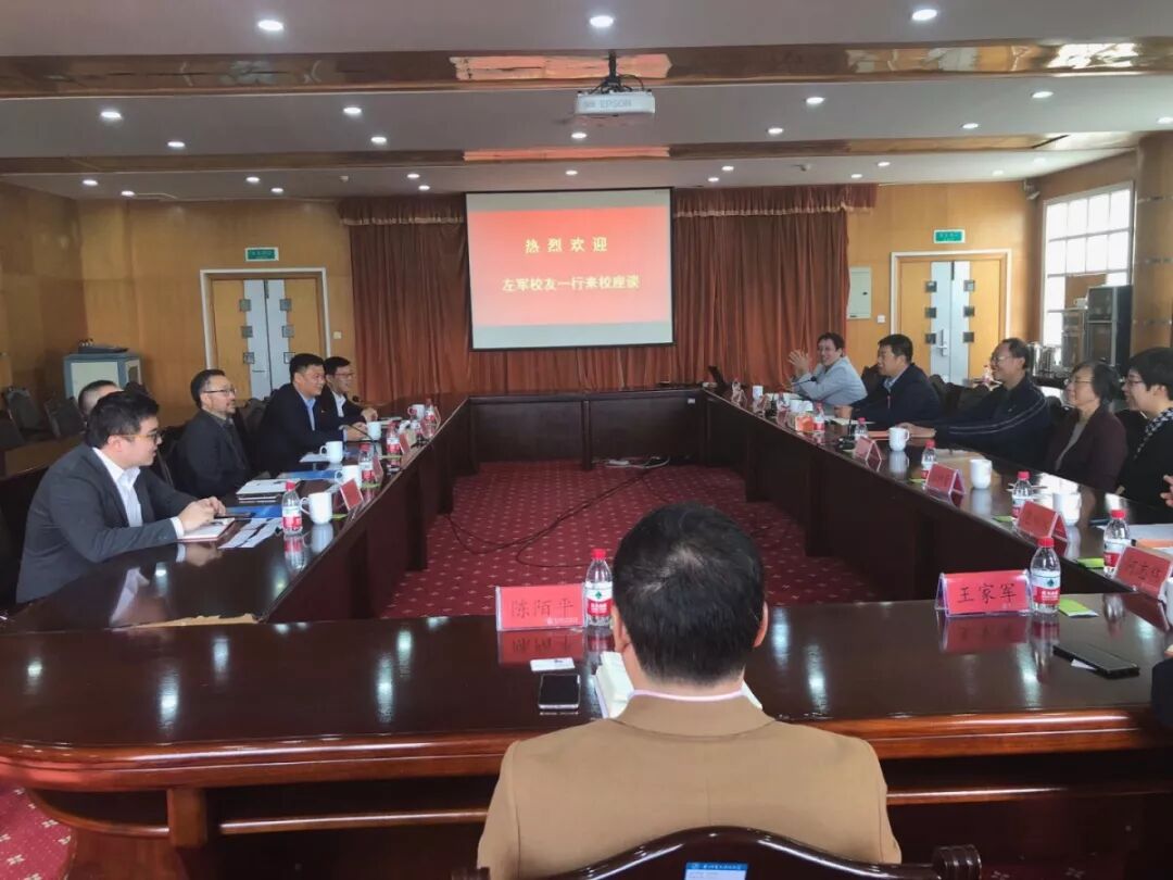 座谈会上,胡华对左军校友一行来校交流表示欢迎,并介绍了我校近年来的发展情况,着重介绍了我校相关领域的学科建设、人才培养、科研能力等方面情况,希望双方针对共同科研领域加强交流合作,根据国家重点建设项目和发展规划找准优势互利合作点,大力推进合作。