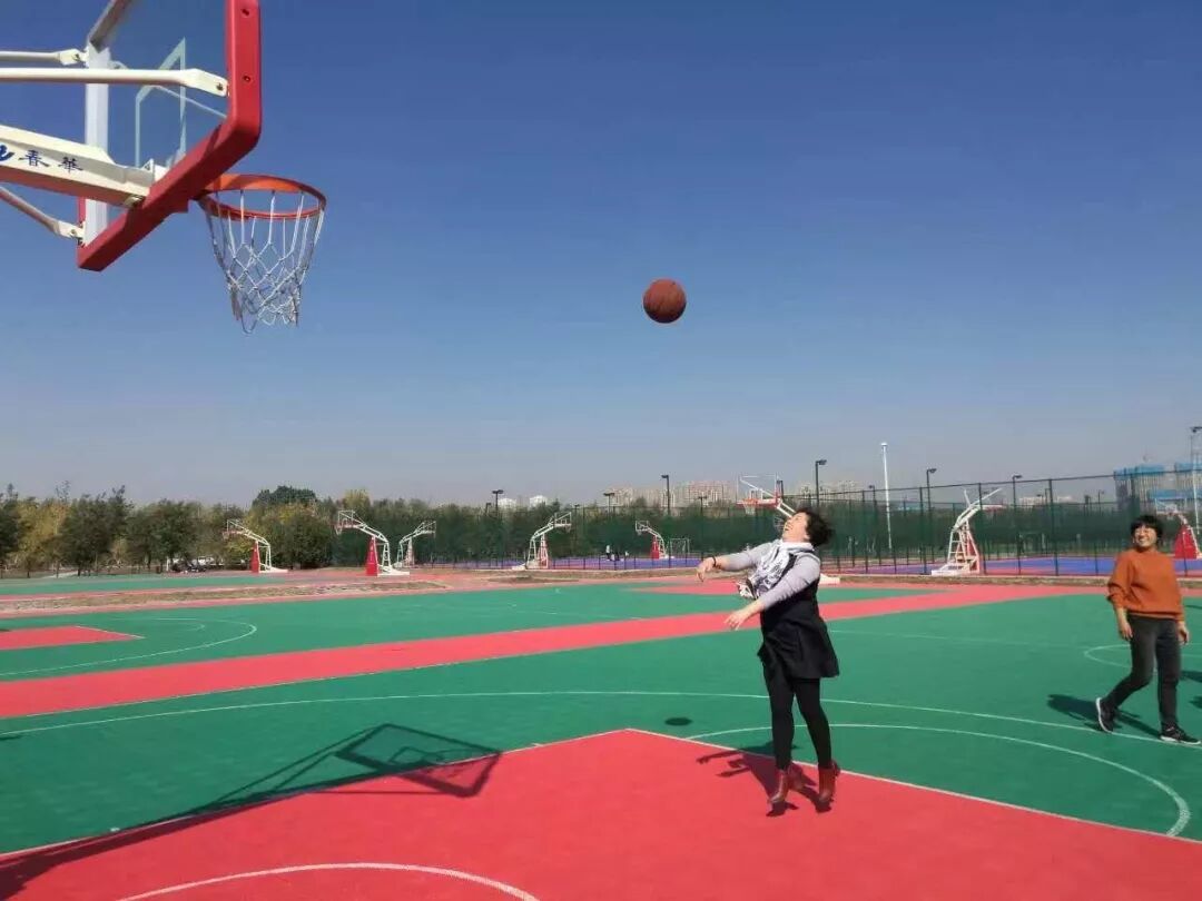 校友会自备篮球,在球场进行投篮活动,每位女同学需至少投一次篮,篮球碰到篮环有效。年龄较大的校友高兴地说,我们仿佛又回到了青少年时代。