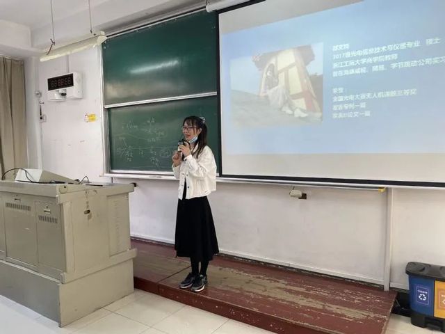 郑文琦是2017级光电信息技术与仪器专业硕士,现任浙江工商大学商学院教师。在分享会上,郑文琦就自己在海康威视的实习经历展开分享。她建议学弟学妹们在选择职业时不局限于自己的专业;在求职时要保持自信;多积累一些实习经历,为自己日后求职作铺垫。