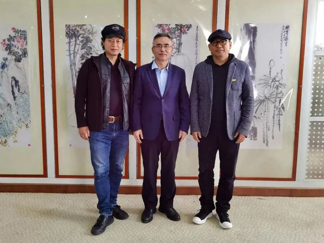 文建军教授、石丕民教授与校党委书记王兴杰合影