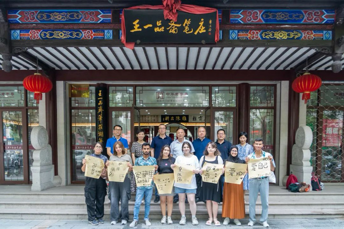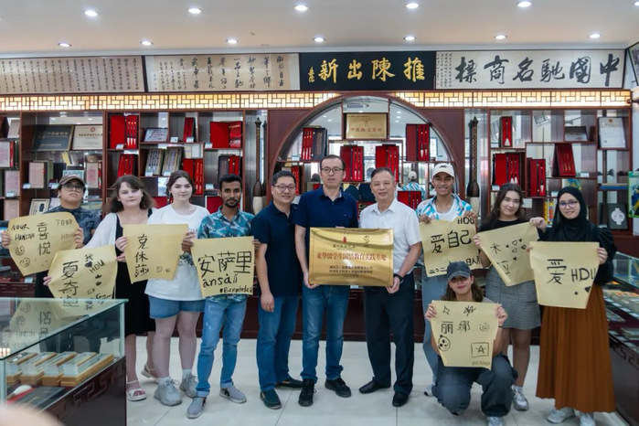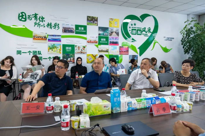 8月7日,来华留学生国情教育名师工作室(以下简称工作室)开展暑期国情教育系列活动,走访参观了湖州王一品斋笔庄、浙江美丽健乳业公司德清生产基地和浙江聚倍科技集团等3家校友企业。我校副校长杨勇、联络发展中心主任张钟蕾、理学院党委书记吴一桥、国际教育学院院长王一安、留学生代表 8人、中国学生代表3人参加了活动。