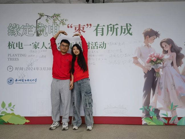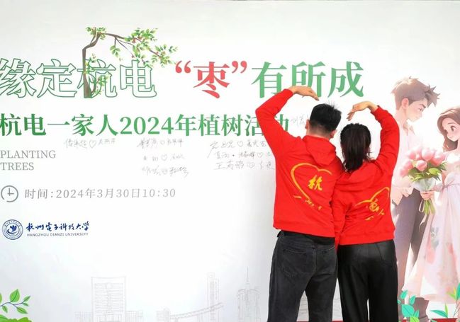 330日,杭城迎来2024年首个超30℃大热天。同样热烈的,还有杭电下沙校区休读园内正在举行的首届缘定杭电 枣有所成校友植树认养活动。16对身着红色情侣装的校友夫妻,从四面八方返回母校,幸福的笑靥如春日美景、夏日晴空,治愈而温馨。