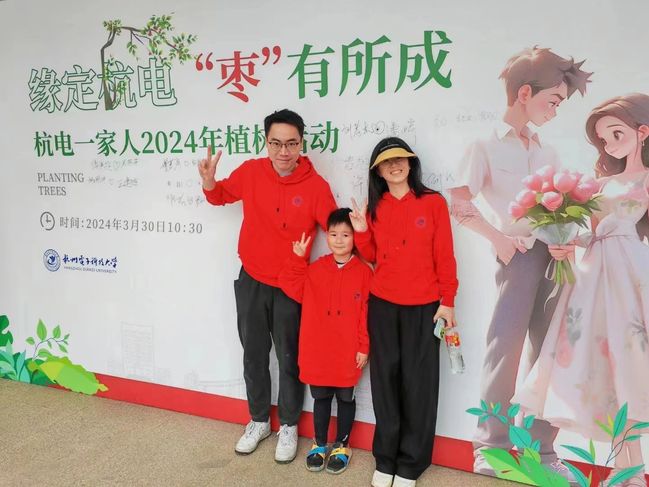 同时,关于杭电学习氛围好,周围同学、老师之间关系都十分融洽的评价也在另一对校友——严余潇暘和他的妻子刘纪君的言行中得到印证。严余潇暘告诉记者,因为本科四年已经感受过杭电的氛围了,所以读研也毅然决然地选择回杭电读。而刘纪君对杭电的热爱可以称得上是言传身教。作为一名教师,她发动了她的2名学生今年也报考了杭电研究生,今天来参加研究生复试,也是陪同自己来参加植树活动,提前感受杭电的校友文化氛围。