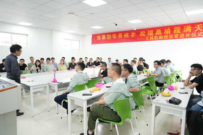 王老师勉励同学们继续前行,再创辉煌。莫道桑榆晚,为霞尚满天,最后大家一起用刘禹锡的诗句祝愿王老师退休不褪色,退休生活丰富多彩。