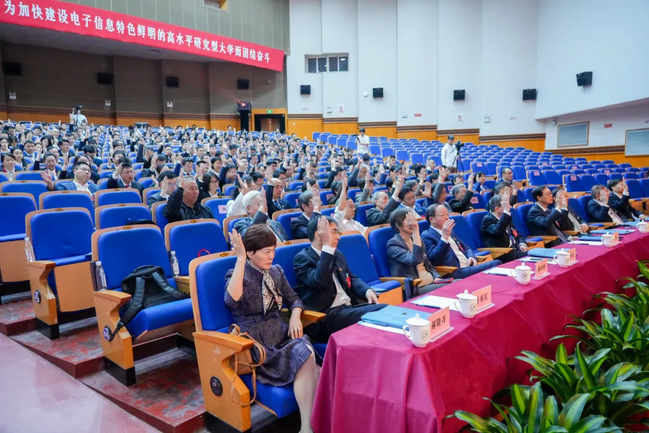 吴卿在工作报告中指出,第三次党代会以来,学校党委团结带领全校师生员工,坚决落实党中央和省委省政府决策部署,不断加强党对学校工作的全面领导,奋力推进学校各项事业高质量发展,为建设电子信息特色鲜明的高水平研究型大学打下了坚实基础。五年来,我校切实强化政治引领把关定向,党的领导更加坚强有力;持续推进强基固本创先争优,党建思政工作不断夯实;不断强化电子信息特色优势,学科建设全面提档升级;全面落实立德树人根本任务,人才培养质量持续提升;多维并举深化人才强校工程,师资队伍不断建强建优;主动对接国家重大战略需求,科技创新活力不断迸发;着力促进产学研用深度融合,服务数字科技“硬核度”显著增强;积极拓展对外交流合作共赢,国际化办学水平不断提升;深入推进治理体系健全完善,整体治理效能全面提高;持续改善办学条件保障民生,师生幸福感获得感进一步增强。