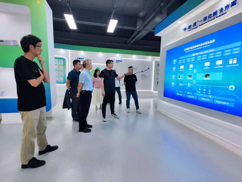 武汉合智数字能源技术有限公司创始人、99级管理专业校友叶权海热情接待了来访校友。叶权海校友引领众人参观了企业的参观了公司的展厅、充电桩和控制器的产线。,沿途详细讲解企业的发展历程、业务布局,并分享企业取得的各项成就。当了解到公司2024年年营收破4亿元,产品订单已排至2个月后,2025年预计营收6亿元目标时,校友们对企业的创新发展理念和亮眼成绩称赞有加,期间大家还积极互动,结合自身经验与行业见解展开热烈讨论,现场交流氛围高涨。
