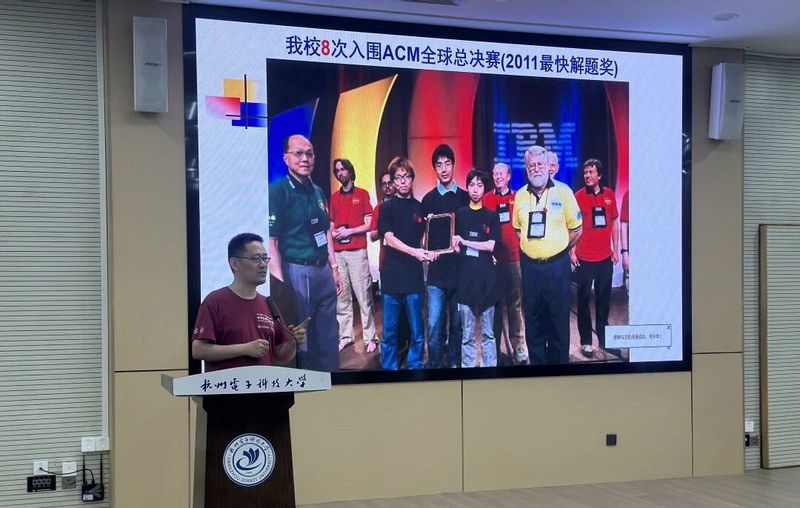 一场与ACM竞赛荣耀殿堂的“零距离”接触将气氛推向高潮。杭电ACM战队功勋教练刘春英老师亲自担任“向导”,不仅如数家珍般讲述了战队勇夺多项世界级桂冠的辉煌战绩,更动情分享了金牌背后日以继夜、攻坚克难的拼搏故事。
