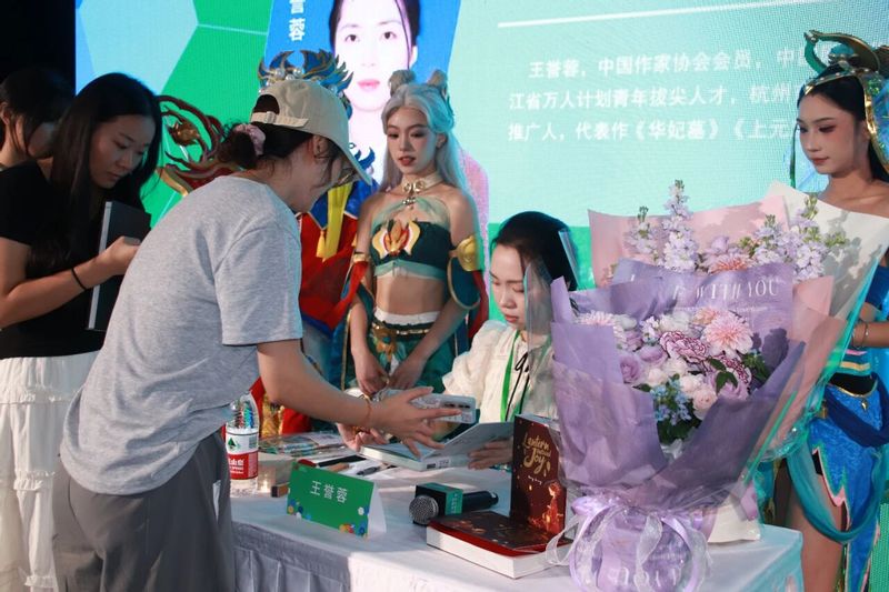王誉蓉,杭电外国语学院2010级校友,中国作家协会会员,中国网络作家村党支部书记、团委书记、工会主席,杭州市C类人才,,杭州国家版本馆“文润书香”阅读推广人,代表作《华妃墓》《上元欢》《不过重来而已》等,其中《上元欢》英译版纸质书于亚欧、北美地区发行,作品入选中国作协网络文学重点作品项目,入藏新加坡国家图书馆、意大利作家联合会、罗马大学孔子学院、英国大英图书馆和查宁阁图书馆等海外机构。