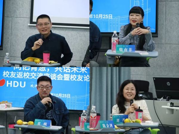 在交流发言环节,校友们深情回顾了在杭电外院求学期间的点滴往事,表达了对恩师教诲的感激之情和对母校培育的感恩之心,畅谈职业感悟,分享人生经验,现场掌声不断,互动频频。