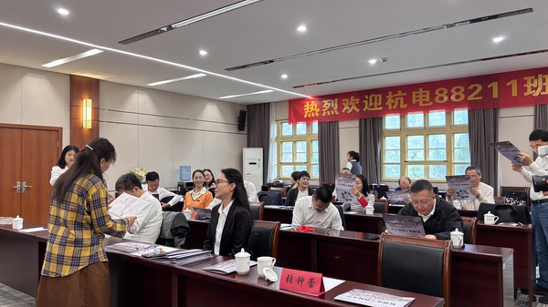 当天上午,校友们齐聚文一校区,联络发展中心主任张钟蕾到场,与校友们亲切交流,随后详细介绍母校近年发展近况:核心学科实力持续攀升,电子信息、计算机等优势领域科研成果频出;高考生源质量稳步提升,成为全国优秀学子报考的热门选择;毕业生凭借扎实功底与实践能力,深受企业青睐;校区建设同步推进,新校区拓展与老校区升级改造让校园焕发新活力。张主任特别提及学校即将迎来 70 周年校庆,诚挚邀请校友们届时再聚,共庆母校华诞。话音刚落,她向 88211 班赠送纪念册 —— 册中泛黄的老照片、清晰的成绩单,瞬间将大家拉回青葱校园时光。