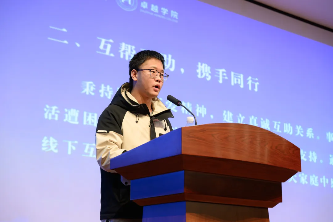 11月15日上午,卓越学院在4教127举行第一次校友大会。校党委委员、党委宣传部(教师工作部)部长陈云出席会议并致辞。校联络发展中心主任张钟蕾,校研究生院副院长潘建江,校教务处副处长吴颖,校后勤服务中心纪委书记周爱娟,校学生处副处长何照清,卓越学院历届校友代表、全体教职工、2025级新生班主任及全体新生参加大会。院党委副书记兼纪委书记张君辉主持。
