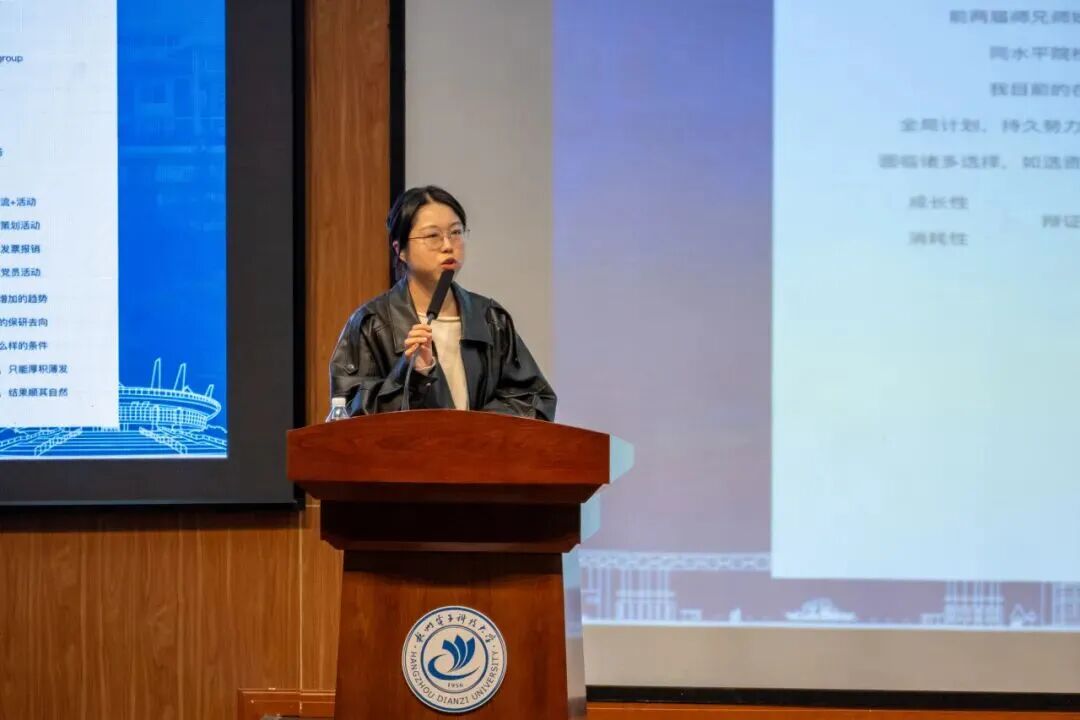 在对话校友、共促成长环节,2020届毕业生邓欣豪分享了从杭电本科到清华博士的成长经历,他特别强调“以目标为导向”的重要性,提醒学弟学妹们既要尽早确立目标,也要敏锐把握社会发展趋势,灵活调整前进方向。2023届毕业生王子怡分享通过竞赛锻炼、学生工作和实习实践,不断拓展视野、提升能力,走出了一条不断突破自我、持续发展的成长之路。