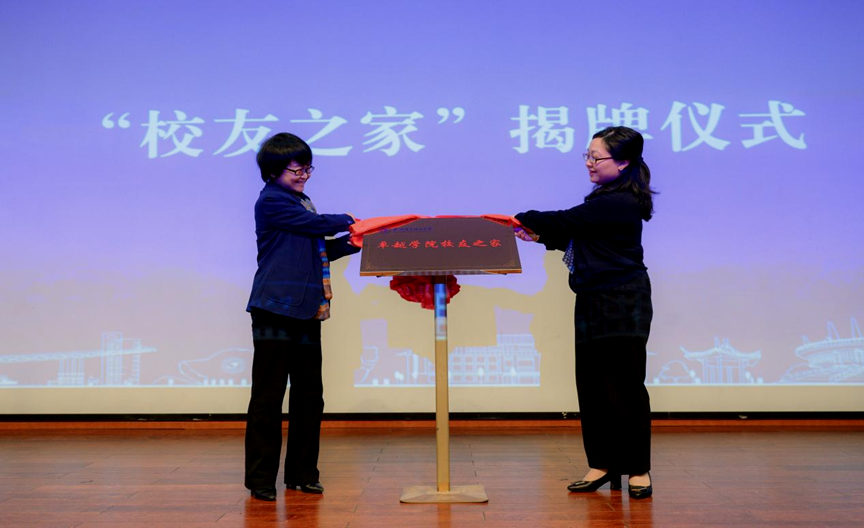 卓越学院党委书记、院长薛凌云与校教务处副处长兼卓越学院副院长应娜为学院校友之家揭牌。